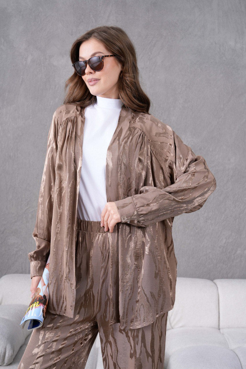 The standout feature is the hand-embellished detailing on the back of the kimono-style top, inspired by celestial beauty and finished with delicate shimmer that catches the light with every step. The relaxed-fit silhouette drapes beautifully, balancing ease and elegance.